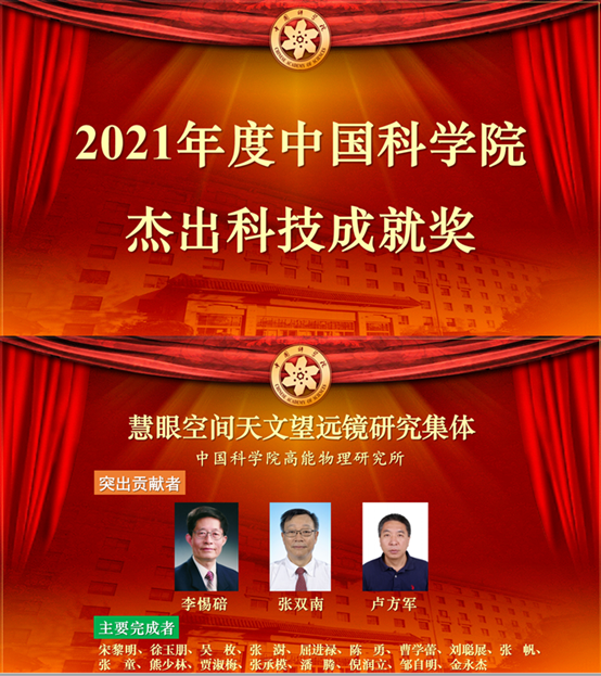 “慧眼空间天文望远镜研究集体”荣获2021年度中国科学院杰出科技成就奖