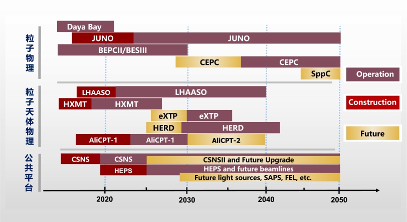 2012年9月中国科学家提出建设环形正负电子对撞机(Circular Electron Positron Collider,CEPC),研究希格斯粒子及相关的科学问题,寻找超出“标准模型”的新物理。CEPC将建设于周长100公里、地表深度约为100米的圆环隧道中,正负电子对撞的质心系能量为240GeV。在完成希格斯粒子研究之后,CEPC可以在同一个隧道内被升级为100TeV质心系能量的超级质子-质子对撞机(SppC),实现高能量的质子对撞。CEPC将吸引全世界的科学家参与,打造一个世界级的粒子物理前沿研究中心,为推动中国走向世界高能物理研究最前沿提供丰富的新物理发现潜力。