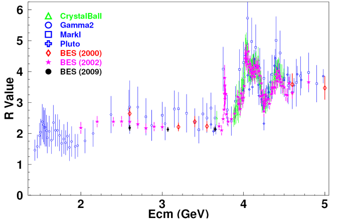 BESII将2-5GeV能区的R值测量精度由原来的15%改善到6.6%,是当时国际高能物理高精度测量前沿的重要成果之一