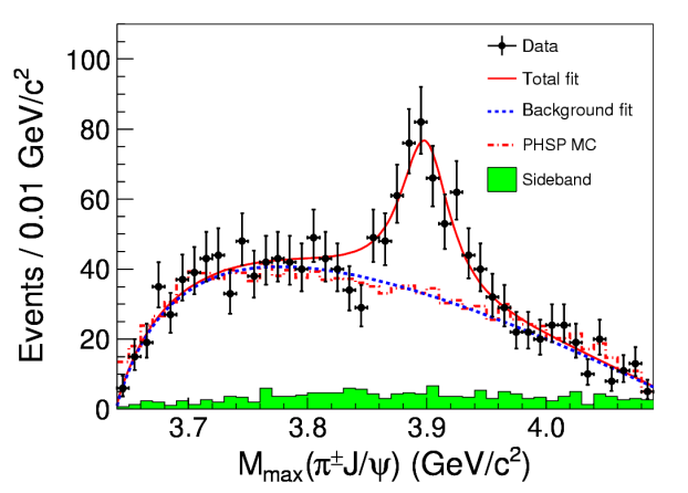 2013年北京谱仪实验发现了一种全新的粒子Zc(3900)。《自然》报道“夸克‘四重奏’打开物质世界新大门”。在美国《物理》公布的2013年物理学领域十一项“亮点”成果中,“发现四夸克物质”位列榜首。入选2013年度“中国科学十大进展”和中国科学院“十二五”25项重大科技成果及标志性进展。