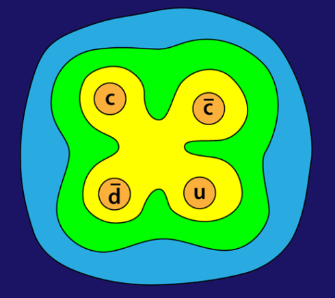 BESIII发现的Zc(3900)[左]和它的夸克结构示意图[右]