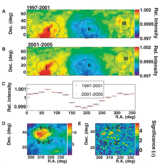中日合作ASγ实验发现宇宙线的各向异性分布以及围绕银河系中心旋转的证据,2006年发表于美国《科学》杂志,并被誉为“里程碑”式的成果