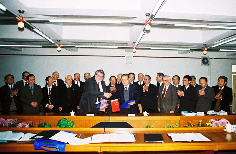 中美高能物理联合委员会第19次会议在我所举行 。参加会议的中国代表团成员有:路甬祥(中方主席)、竺玄、钱文藻、金铎、陈和生、方守贤、李卫国、张闯、阎永廉、黄涛、陈森玉、徐洪杰、张侃、安建基、曹京华、侯儒成、邓铁军。会议期间,中美双方回顾了去年以来合作计划执行的情况,热烈讨论了我方提出的下一年度中美高能物理合作项目。经双方认真讨论和友好协商,签定了《中美高能物理合作计划》(1998年11月-1999年11月),共29个合作项目。朱镕基总理接见了会议代表。