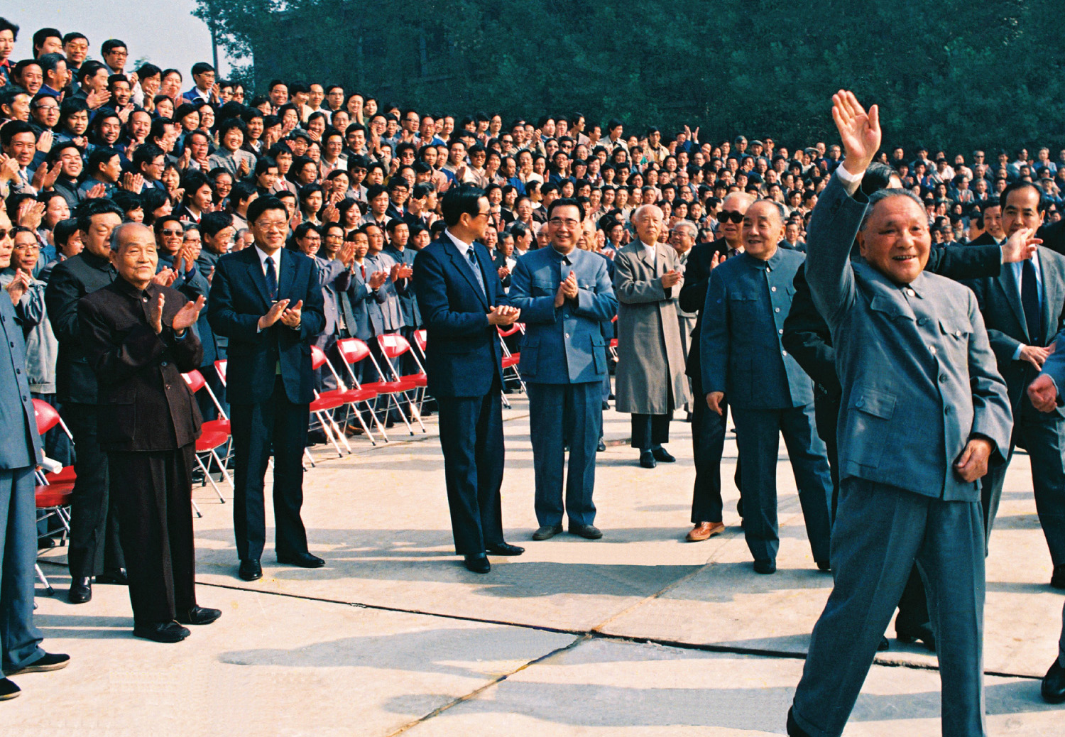 1988年10月24日,邓小平等党和国家领导人视察北京正负电子对撞机,慰问参加工程建设的代表。邓小平同志发表了“中国必须在世界高科技领域占有一席之地”的重要讲话。