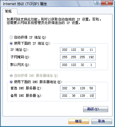 4、当用户根据计算中心分配的IP地址信息,再在您的计算机上进行设置;