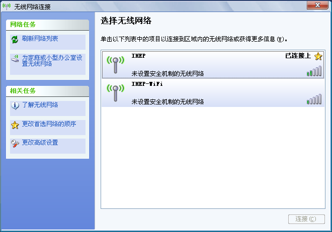 1.在高能所无线网络信号覆盖范围内连接标识为“IHEP”的无线AP。