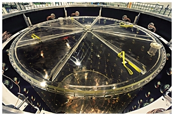 安裝就位的兩個直徑五米、高五米的中微子探測器。