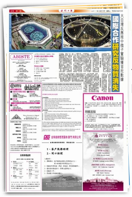 (新華社) 大亞灣反應堆中微子實驗獲首批數據 國際合作研究反物質消失