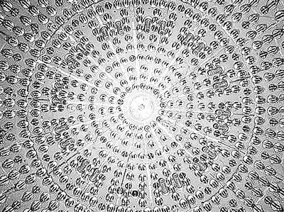 在内部从下向上观察到的太阳中微子天文台不锈钢球体。