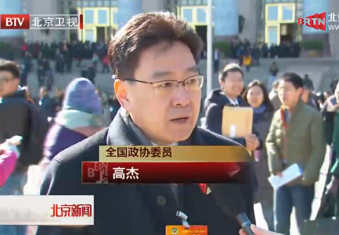 高杰在全国政协十二届三次会议开幕式当天接受北京电视台采访(电视画面截图)