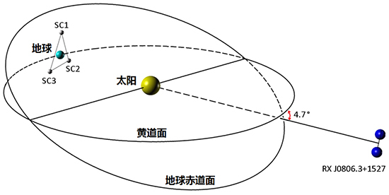 2016年,中山大学牵头的中国空间引力波探测工程“天琴计划”正式启动基础设施工程建设。“天琴计划”将向太空发射三颗卫星。这三颗卫星在以地球为中心、高度约10万公里的轨道上运行,构成一个等边三角形阵列,对一个周期仅有5.4分钟的超紧凑双白矮星系统RX J0806.3+1527产生的引力波进行探测。