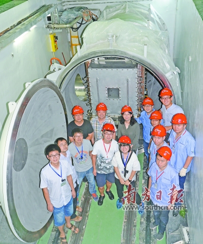 孙志嘉(后排左二)带领其团队研发出拥有我国自主知识产权的探测器。南方日报记者 孙俊杰 通讯员 翟倩儿 摄