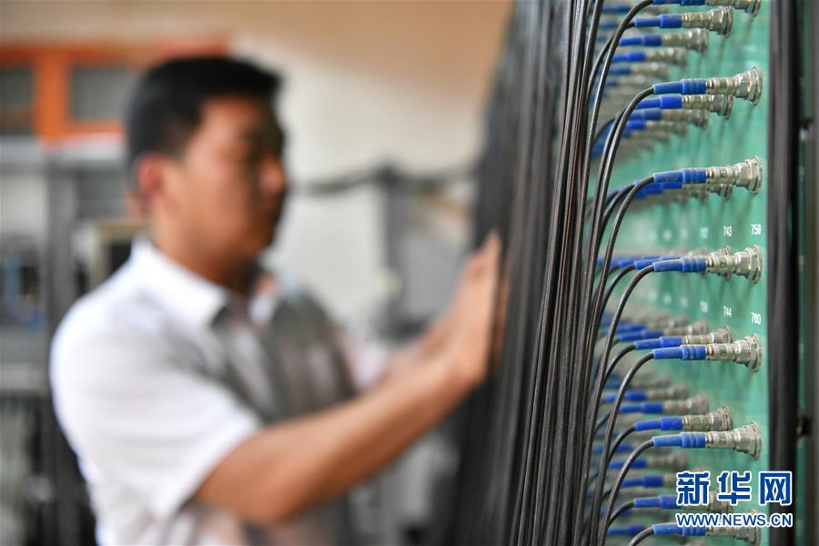 7月2日,项目组成员刘茂元在西藏羊八井调试设备。  新华社记者 李鑫摄