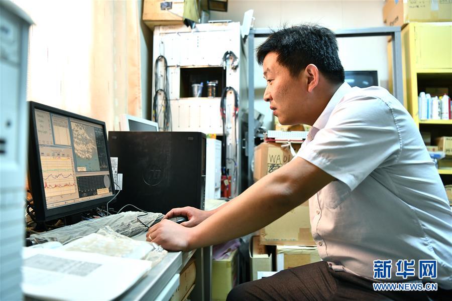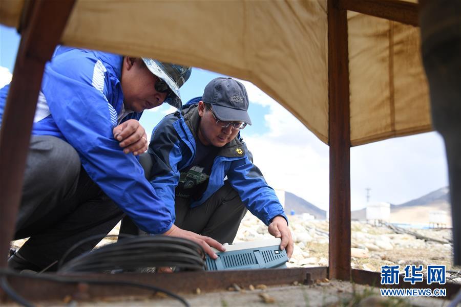 7月2日,项目组成员刘茂元在西藏羊八井查看数据。  新华社记者 李鑫摄