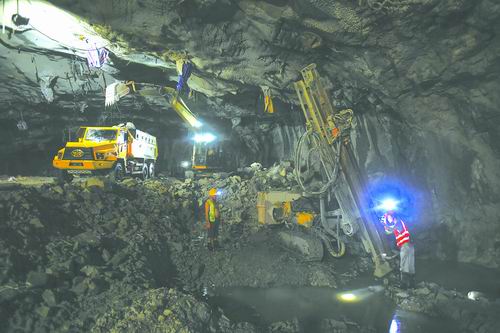 近日,中国水电六局工程人员在700米深的江门中微子实验地下实验室进行中导洞施工。