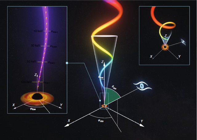 研究团队因此提出,该低频QPO应该产生于黑洞视界附近喷流的进动,很可能是黑洞自转产生的广义相对论的参考系拖曳效应产生的。喷流是运动速度接近光速的高速物质流,以前在射电、可见光和X射线波段从很多黑洞X射线双星系统以及中心是超大质量黑洞的遥远类星体中都观测到过,是黑洞系统的一种主要观测特征,也是黑洞系统在吞噬周围物质的过程中对周围环境产生显著反馈影响的一种主要手段。