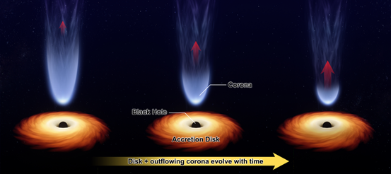 随着天文学的发展,在银河系中发现的黑洞X射线双星系统越来越多。目前普遍认为,在黑洞X射线双星中,伴星物质被黑洞引力捕获,旋转着逐渐向黑洞运动,形成吸积盘结构,而在吸积盘内区附近又会形成高温冕。然而,冕在黑洞附近如何运动一直是致密天体研究中的一个未解之谜。