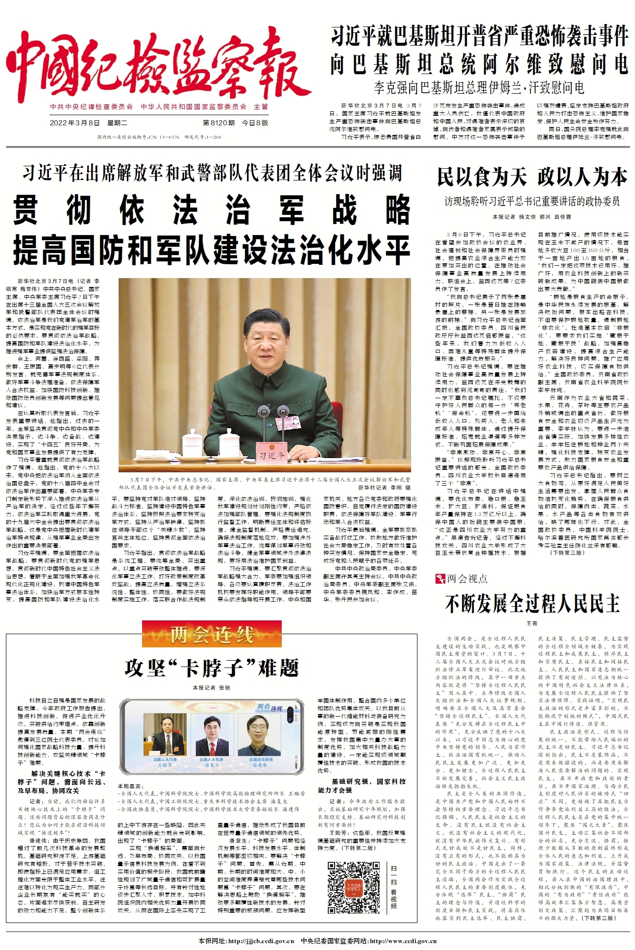 (源自中央纪委国家监委网站和《中国纪检监察报》2022年3月8日 第一版,原文链接:http://v.ccdi.gov.cn/2022/03/06/VIDECfKWXaiVXpN0JPCnSZik220306.shtml