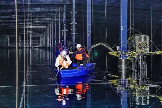 2019年,曹臻(右)在LHAASO的水切伦科夫探测器中检查注水情况。    受访者供图