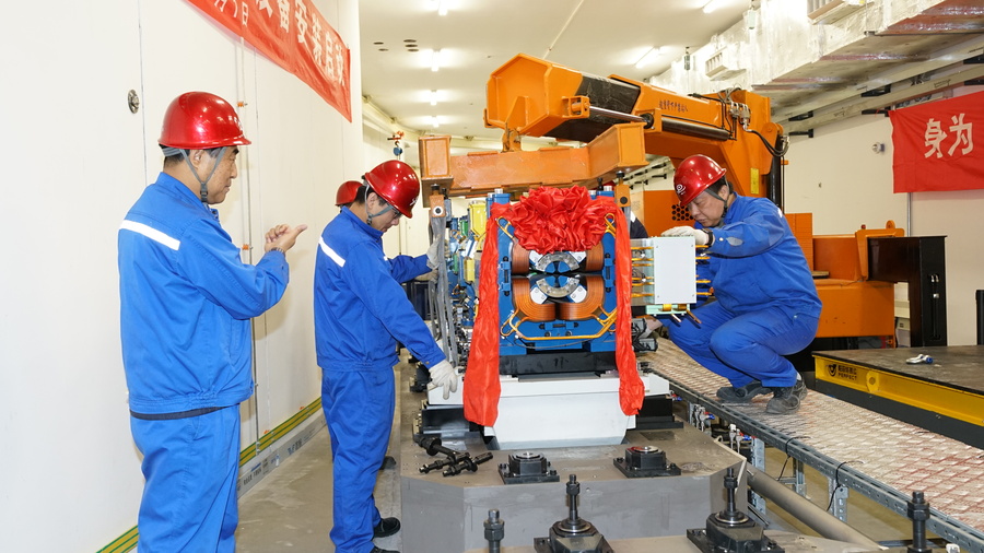 “我代表指挥部宣布,高能同步辐射光源储存环隧道设备安装正式启动。”2月1日14点06分,在位于北京怀柔的高能同步辐射光源(HEPS)储存环隧道里,HEPS工程总指挥潘卫民话音刚落,一段像火车头一样的储存环预准直单元,扎着红色的绸带,缓缓地卡进混凝土基座的卡槽。