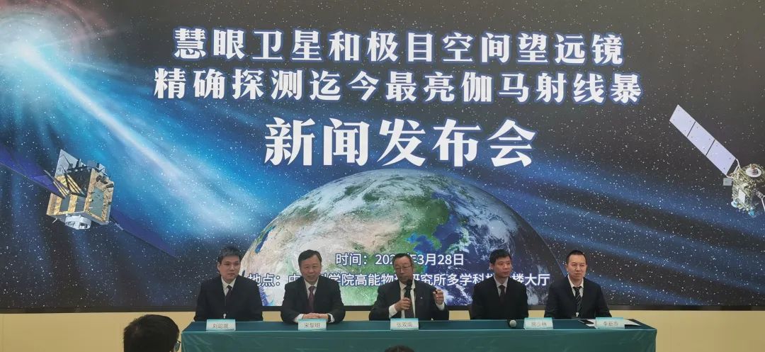高能所牵头研制的慧眼卫星和极目空间望远镜成功地在硬X射线和软伽马能段对该伽马暴的瞬时辐射和早期余辉进行了国际最高精度的测量,不仅发现其具有迄今观测到的最大亮度,将伽马暴的亮度纪录提升了50倍,而且发现其各向同性能量也打破纪录,相当于在1分钟内释放8个太阳质量的全部能量,还揭示其产生了极为狭窄、极端明亮、接近光速运动的喷流,对这个千年一遇的天体爆发的研究做出了独特贡献。