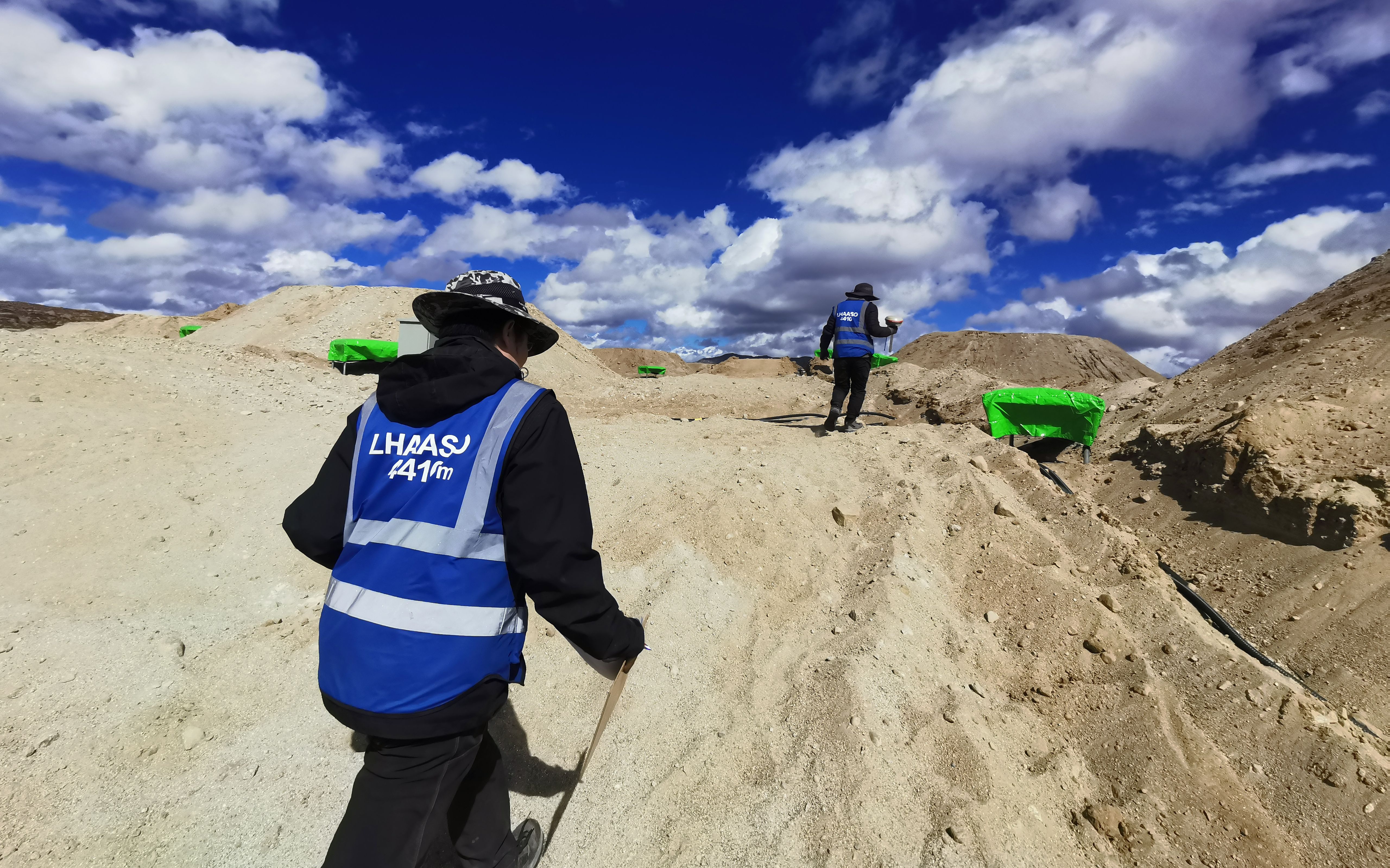 电磁粒子探测器团队在现场进行探测器定位工作。中科院高能所供图