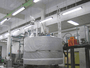 此印度国内最大的超导磁铁加载后,产生48千高斯的磁场。几百安培的电流在通过加载的线圈时,在称为低温保持器的特别容器中约300升液氦的帮助下,其温度保持在-2690C。性能非常令人满意。