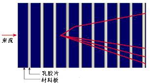 OPERA采用1毫米厚的铅板片,铅板间为薄膜,上图说明中微子的轨迹如何开始。