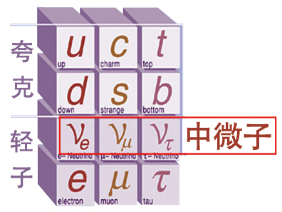 粒子物理的研究结果表明,构成物质世界最基本的粒子有12种,包括6种夸克(上、下、奇异、粲、底、顶),3种带电轻子(电子、缪子和陶子)和3种中微子(电子中微子、μ中微子和τ中微子)。