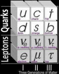 1954年,杨振宁和米尔斯提出的杨-米尔斯理论(又称规范场理论)在应用于弱相互作用以及强相互作用研究时遇到了障碍:由于规范理论的规范对称性禁止规范玻色子带有任何质量,这与实验中的观测不相符合,不解决此问题整个研究就失去了基础。 格拉肖1961年提出的弱电统一模型没有解决零质量规范粒子的困难 。1962年,每一个自发对称性破缺都被证明必定伴随着一个无质量无自旋的粒子,问题依然存在。 1964年,英国科学家希格斯(Peter Ware Higgs,1929- )(左图)提出了一种克服规范场粒子零静止质量困难的方法。他引入一种标量粒子(后称为希格斯粒子),通过这种粒子的真空自发破缺,可以使与被破缺的规范对称性相对应的规范场获得静止质量。 1967年,温伯格和萨拉姆在格拉肖弱电统一原始模型的基础上,借鉴希格斯的方法发展和完备了弱电统一规范理论。弱电统一理论的预言与实验符合得很好,特别是它所预言的中间玻色子W±和Z0于1983年在欧洲核子中心的实验中观测到了,它们的质量与主要性质都和理论预言符合得相当好。 粒子物理学标准模型以夸克模型为结构载体,在弱电统一理论以及量子色动力学的基础上逐步建立和发展起来。格拉肖等人被称为标准模型的奠基人。 标准模型描述了与电磁力、强作用力、弱作用力三种基本力(没有描述重力)及组成所有物质的基本粒子的所有物理现象,可很好地解释和描述基本粒子的特性及相互间的作用。 标准模型根据自旋将粒子分成分为费米子和玻色子两大类,就好像世界上人类的性别一样重要。费米子(指组成物质的粒子,如轻子中的电子、组成质子和中子的夸克、中微子),有半整数自旋(如1/2,3/2,5/2等),玻色子(指传递作用力的粒子,如传递电磁力的光子、介子、传递强核力的胶子、传递弱核力的W和Z玻色子)有整数自旋(如0,1,2等)。自旋的差异使费米子和玻色子有完全不同的特性。费米子拥有半整数的自旋并遵守泡利不兼容原理;玻色子则拥有整数自旋而并不遵守泡利不兼容原理。 费米子可以分为三个“世代”(左图)。第一代包括电子、上及下夸克及电子中微子。所有普通物质都是由这一代的粒子所组成;第二及第三代粒子只能在高能量实验中制造出来,且在短时间内衰变成第一代粒子。这些粒子排列成三代是因为每一代的四种粒子与另一代相对应的四种粒子的性质几乎一样,唯一的分别就是它们的质量。 电子与电子中微子,以及在第二、三代中相对应的粒子,统称为轻子。轻子没有“色”的性质,它们的作用力(弱力、电磁力)会随距离增加变得越来越弱。相反,夸克间的强力会随距离增加而增强,夸克只会在色荷为零的组合中出现,这些不同的组合统称为“强子”。强子分为两种:由三个夸克组成的费米子,即重子(如质子及中子);以及由夸克-反夸克对所组成的玻色子,即介子(如π介子)。 当美国费米实验室1995年3月2日向全世界宣布发现了“顶夸克”时,标准模型所预言的61个基本粒子中 的60个都已经得到了实验数据的支持与验证,标准模型中最后一种未被发现的粒子就是希格斯粒子。 首个与标准模型不相符的实验结果在1998年出现:日本超级神冈中微子探测器发表有关中微子振荡的结果显示中微子拥有非零质量,因为零质量粒子以光速行进而不会感受到时间的推移。 标准模型预言的希格斯粒子是自旋为零的玻色子(Higgs boson),是整个标准模型的基石(右图),如果希格斯粒子不存在,意味着整个标准模型将失效。希格斯粒子极不稳定,如果它确实存在,它会在碰撞后10亿分之一秒的时间内衰变。因此,捕捉希格斯粒子极不容易,科学家们已为此做了多年的努力,下决心要找到这个神秘的粒子。 2000年,欧洲核子中心在当时世界上最大的正负电子对撞机LEP(左图中的大圆)上用电子-正电子对撞的方法,在质量约为115GeV的地方发现有希格斯粒子的存在,但当时的统计数据不足,无法得到充分的证实。 2003年,科学家们试图通过美国费米实验室的正负质子对撞机,让质子与反质子相互对撞分析出希格斯粒子的运动轨迹,来证实或否定欧洲核子中心先前的实验结果。但由于计划从旧实验中回收反质子的方案不可行,且运行二十年之久的正负质子对撞机也到了需要更新的阶段,需要很长的时间来修复,此项研究遇到了挫折。 标准模型的建立是20世纪物理学取得的最重大成就之一。迄今为止,标准模型被认为是最有效的一个唯象理论,经受了相当成功的实验检验。但标准模型仍然存在着许多基本的疑难问题有待解决,如希格斯粒子的存在和本质,粒子质量的来源,夸克和轻子更深层次的特征标度,标准模型更深层次上的基本规律等。 标准模型认为物质和反物质是对称的,但宇宙中的物质比起反物质多出很多。 标准模型对重力的忽略,未能为宇宙开始时的宇宙膨胀找出一个机制。 标准模型并不容纳非零质量的中微子,它假设宇宙中只有左旋中微子(即相对于运动轴,其自旋方向为逆时针)。如果中微子质量非零,它们的行进速度会小于光速。这样,理论上就可以超越一颗中微子,以致可以选择一个令这颗中微子运动方向颠倒而自旋不变的参考系,导致它变为右旋。物理学家为此修定标准模型,加入更多的自由参数以准许中微子带质量。新的模型仍叫做标准模型。超对称理论是标准模型的一个延伸,它提出传统模型中的每一种基本粒子都有一个大