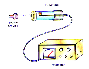 盖革-米勒计数器是根据射线能使气体电离的性能制成的,是最常用的一种金属丝计数器。两端用绝缘物质封闭的金属管内贮有低压气体,沿管的轴线装了金属丝,在金属丝和管壁之间用电池组产生一定的电压(比管内气体的击穿电压稍低),管内没有射线穿过时,气体不放电。当某种射线的一个高速粒子进入管内时,能够使管内气体原子电离,释放出几个自由电子,并在电压的作用下飞向金属丝。 这些电子沿途又电离气体的其它原子,释放出更多的电子。越来越多的电子再接连电离越来越多的气体原子,终于使管内气体成为导电体,在丝极与管壁之间产生迅速的气体放电现象。从而有一个脉冲电流输入放大器,并有接于放大器输出端的计数器接受。计数器自动地记录下每个粒子飞入管内时的放电,由此可检测出粒子的数目。