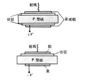 半导体探测器有两个电极,加有一定的偏压。当入射粒子进入半导体探测器的灵敏区时,即产生电子-空穴对。在两极加上电压后,电荷载流子就向两极作漂移运动﹐收集电极上会感应出电荷,从而在外电路形成信号脉冲。但在半导体探测器中,入射粒子产生一个电子-空穴对所需消耗的平均能量为气体电离室产生一个离子对所需消耗的十分之一左右,因此半导体探测器比闪烁计数器和气体电离探测器的能量分辨率好得多。半导体探测器的灵敏区应是接近理想的半导体材料,而实际上一般的半导体材料都有较高的杂质浓度,必须对杂质进行补偿或提高半导体单晶的纯度。