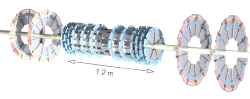 丁肈中领导的AMS实验,目标是在宇宙线中寻找反物质和暗物质。它的探测器核心部分的径迹室采用了多层硅微条探测器(下图左)。由美国、法国、意大利、日本、瑞典等参加的GLAST实验组的大面积γ射线太空望远镜的核心部分也使用了多层硅微条探测器(下图右),总面积大于80平方米,主要用来作为γ→ e-+e+ 的对转换过程的径迹测量望远镜。硅微条探测器的位置分辨率可好于σ=1.4μm,这是任何气体探测器和闪烁探测器很难作到的。