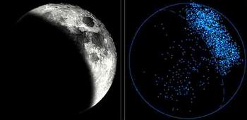 (右图为“钱德拉”2003年9月拍摄到的一组月球X射线照片,图右侧为所拍摄的月球明亮区域由氧、镁、铝和硅原子发出的X射线照片) |
