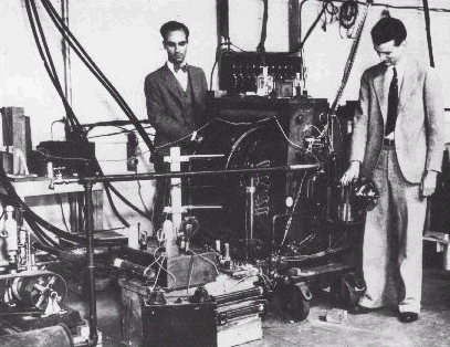 美国加利福尼亚理工学院的内德梅耶(Seth Neddermeyer,1907-1988)(右图)和安德森(Carl D. Anderson)1934年提出假设:具有高度贯穿力的踪迹是质量在电子与质子之间的粒子的踪迹。(左图为安德森与内德梅耶)1936年,他们在宇宙射线中发现了一种带单位正电荷或负电荷的粒子,质量为电子的206.77倍,人们以为它就是汤川秀树1930年预言的介子,称它为μ介子,后来发现这种粒子其实并不参与强相互作用,是一种轻子,所以改名为μ子。