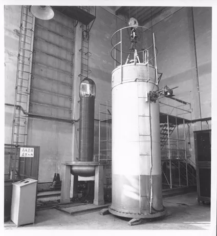 1950年底赵忠尧回到祖国后,领导加速器的研制。当时国内对高真空、高电压、离子源、加速管等加速器的有关技术没有经验,为了掌握有关技术、取得经验、培养研究人员,他先利用他带回的一台退役的静电加速器的绝缘支柱,建造一台在大气中工作的700千电子伏质子静电加速器,1955年建成。