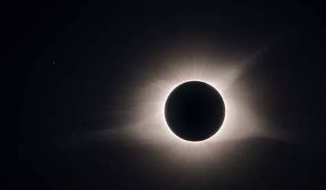当地时间2017年8月21日上午,一道巨大的阴影笼罩了北美大地。此时的月球正好运行到地球和太阳之间,把太阳的光芒遮住,形成了日食。在阴影的中心地带,西起美国俄勒冈州,东到南卡罗来纳州的广大土地上,成千上万的人目睹了日全食的壮丽景象。天空变暗了,仿佛黄昏突然降临,金星、火星和轩辕十四在天空中闪亮。太阳变成一个黑色的圆盘,圆盘周围散发出奇异的白色光芒,并有三条细长的光带一直延伸到几个太阳半径远的地方(图1)。笔者有幸在俄勒冈州观看这次日全食,感受到了美国人民对日全食的热情,21日当天是工作日,有不少人专门请假去看日食,有人举家开车奔赴全食带观看,还有人千里迢迢从阿拉斯加州赶来观看。平时我们司空见惯的太阳,突然变成了大热门。