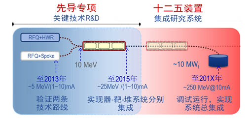通过研制输出质子能量为250MeV的加速器,对强流束流动力学、超导高频腔、高功率CW RFQ加速器、高功率耦合器及加速器稳定运行等关键技术组织联合攻关,验证作为ADS嬗变系统驱动装置的质子直线加速器的方案和技术。