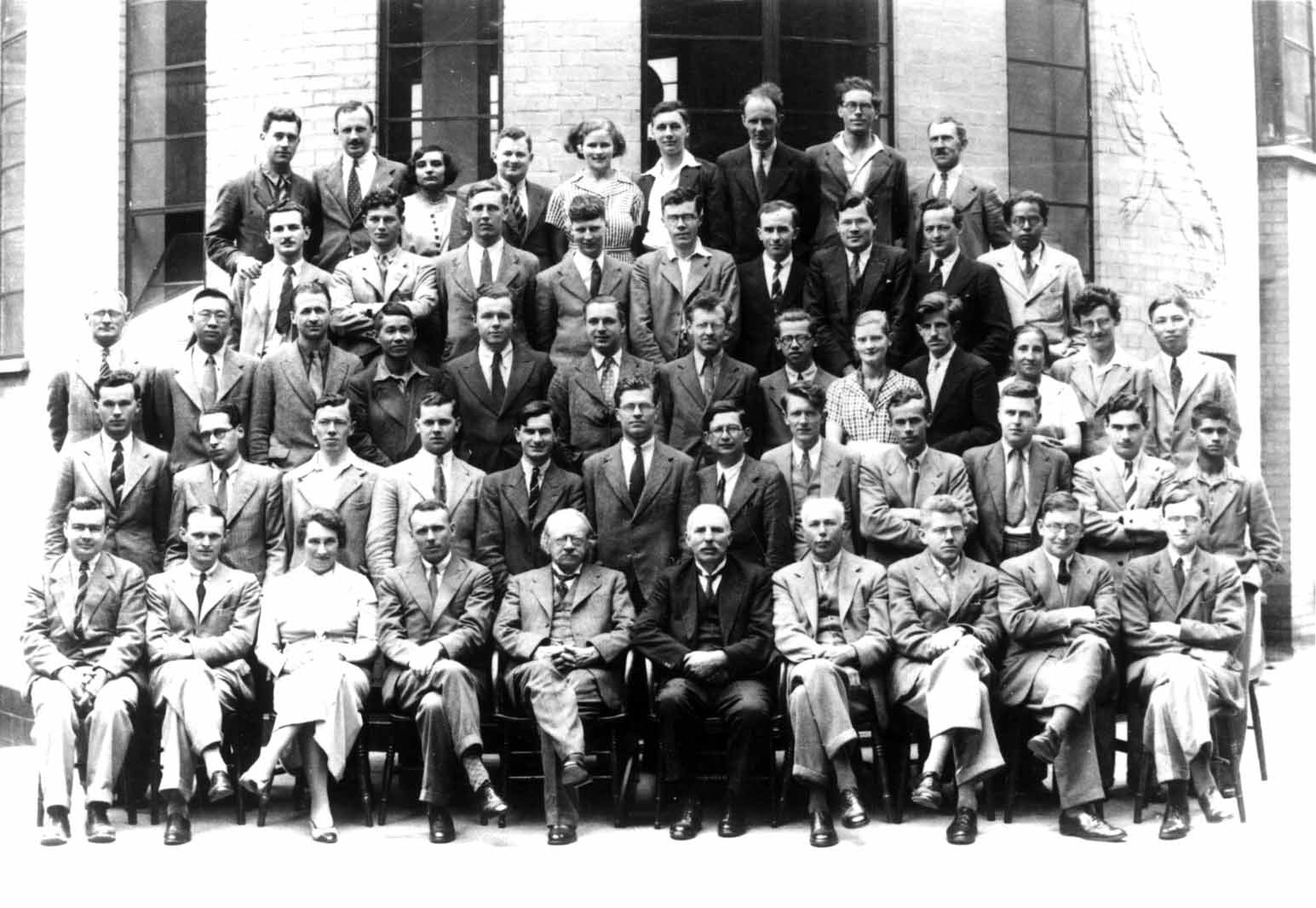 张文裕考取“英庚款”,1935年到英国剑桥大学卡文迪什实验室攻读博士学位,从事核反应研究,导师是该实验室主任、诺贝尔奖获得者卢瑟福教授(前排左六),第三排左四为张文裕