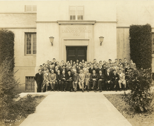 1927年赵忠尧(二排左五)在美国加州理工大学留学