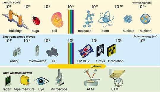 显微镜可用来研究人类肉眼所不及的东西,但显微镜受限于使用的光的波长。光学显微镜可用于研究几微米(0.001毫米)的事物,如:细胞。研究像分子和原子这样更小的物体,则需要借助如X射线类波长较短的光。