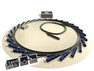 3.储存环。储存环直径235米,周长561米,电子束继续被注入储存环,在强大导向和聚焦磁铁引导下高速运行,每秒钟绕地球7圈半。