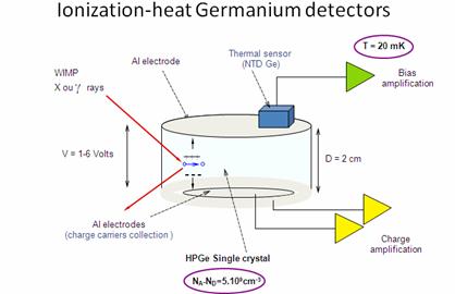 ID锗探测器,亦被称作热辐射测量仪,运行在接近零下273.15oC的低温。它可测量达到百万分之一精确值的温度,并可同时对锗原子与一个WIMPs粒子发生对撞后锗原子核的反冲能量进行精确测量。