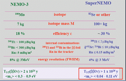 从NEMO III到SuperNEMO将实现如下的跨越:
