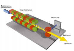 TESLA超导加速器技术为独特的光源,即产生带激光特性的X射线辐射的自由电子激光器创造了理想的条件。当从直线加速器来的高能电子通过一个特殊的磁铁结构时,产生激光束流。TESLA加速节为此目的,即很小束流截面和高束流功率,提供所需高质量的电子束流。采用超导直线加速器作为X射线激光器的驱动器,在世界上独一无二。