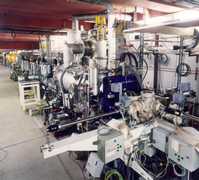 在汉堡的TESLA测试设备由一个电子源,一个超导加速节和一个磁铁结构组成。在磁铁结构中,被加速的电子被感应产生X射线激光的闪光。在这一测试设备上取得的成果是通往TESLA两个项目的里程碑。(左图为 TESLA 测试设备)