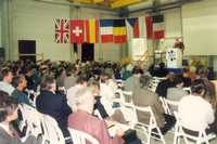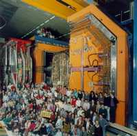 HERA探测器的确像功能极大的照相机那样工作:里面布满了成千上万个电子学部件,这些探测器有3层楼高,重如半个艾菲尔铁塔,每秒能够记录1000万个图像,每秒电子学自动从数据库中挑选10个最佳图像。在HERA正常的运行年份,仅是H1和ZEUS实验粒子对撞的图像就有一亿个被储存起来,所有这些图像都要进行精确地分析。分析这两个实验记录下来事例的是两个国际合作组的约400名物理学家,他们来自12个国家50个研究所。(左图为ZEUS 组的科学家) |