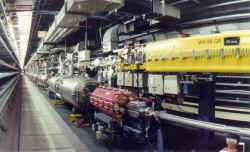 正像地球一样,核子,也就是说,原子核里的质子和中子沿着它们的轴旋转。换句话说,它们具有自旋。这一现象仍然困惑着物理学家们。因在20世纪80年代中,物理学家们发现了核子的3个基本组成部分 – 价夸克 – 仅约占核子自旋的三分之一。其余的三分之二来自哪里?所以在HERA上就搞了HERMES实验来解决这一问题。实验中,科学家们观测从HERA储存环来的高速运动的电子与充满气体的室中的原子对撞时发生的情况。实验中一个非同寻常的情况是,来自HERA和气体原子的电子的自旋按一个特定的方向定位。如果对撞的频率和类型取决于这一排列,那么被观测的粒子反应就会提供质子自旋实际来自哪里的一个清晰的图像。(左图为HERA隧道中的激光极化计) |