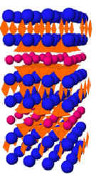 左图为镱钡铜氧化物的原子模型。镱钡铜氧化物是一种超导陶瓷,它的氧位置是有中子散射确定的。