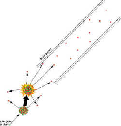 当快速粒子如高能质子轰击重原子核时,一些中子被"剥离",或被轰击出来,在核反应中被称为散裂。被轰击的原子核升温时,其他的中子"蒸发"。对每个轰击原子核的质子来说,都有20-30个中子被轰击出来。(右图)
